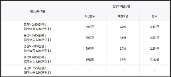 ▶개인 소득의 총급여액이 7,500만 원(종합소득 6,300만 원) 이하에 해당하는 자